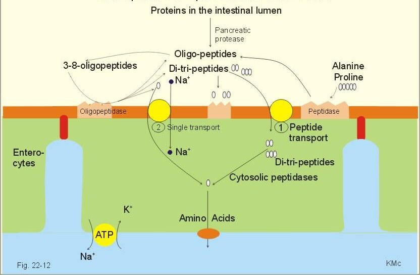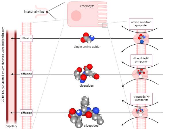 - Dipeptides and tripeptides are absorbed more rapidly than free amino acids in many cases.